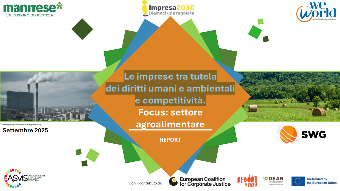 Il sondaggio condotto con WeWorld e Mani Tese in collaborazione con Campagna Impresa2030 e ASviS analizza le responsabilità delle grandi imprese del settore agroalimentare nella tutela dei diritti umani e dell’ambiente. L’indagine mette in luce criticità globali e italiane secondo cui oltre 2 milioni di persone lavorano in condizioni di schiavitù moderna e circa 200.000 lavoratori agricoli in Italia sono gravemente sfruttati.